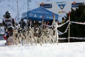 I started mushing almost thirty years ago in the forest of Fontainebleau with 16 dogs harnessed to a 40kg scooter. With dogs weighing 16kg for the females and 23kg for the males, as soon as an Xback harness turned a little the dogs were injured under the armpits. At the time, I used a short, articulated harness that avoided this problem. This type of harness, because of its construction, goes up the trachea and therefore causes quite a lot of loss of power. This wasn't a problem with the size of my team in relation to the load to be pulled. When I moved to Auvergne, where it's never flat, and hitched up a 110kg kart, this power loss problem became crucial. So I started looking for a solution that would allow the dogs not to be constrained while running and that would be efficient in terms of performance. After two years of frustration and discouragement (the solution was good in the summer when we were doing 6km and all the dogs were burnt as soon as we went beyond 50km a week) I saw a photo of Joar Leifseth ULSOM who had just won the Iditarod with a type of harness that I had never seen before and that aroused my curiosity. After a few failed attempts, I finally found the solution to my problem of power and unconstrained running: the CHUKCHI harness.